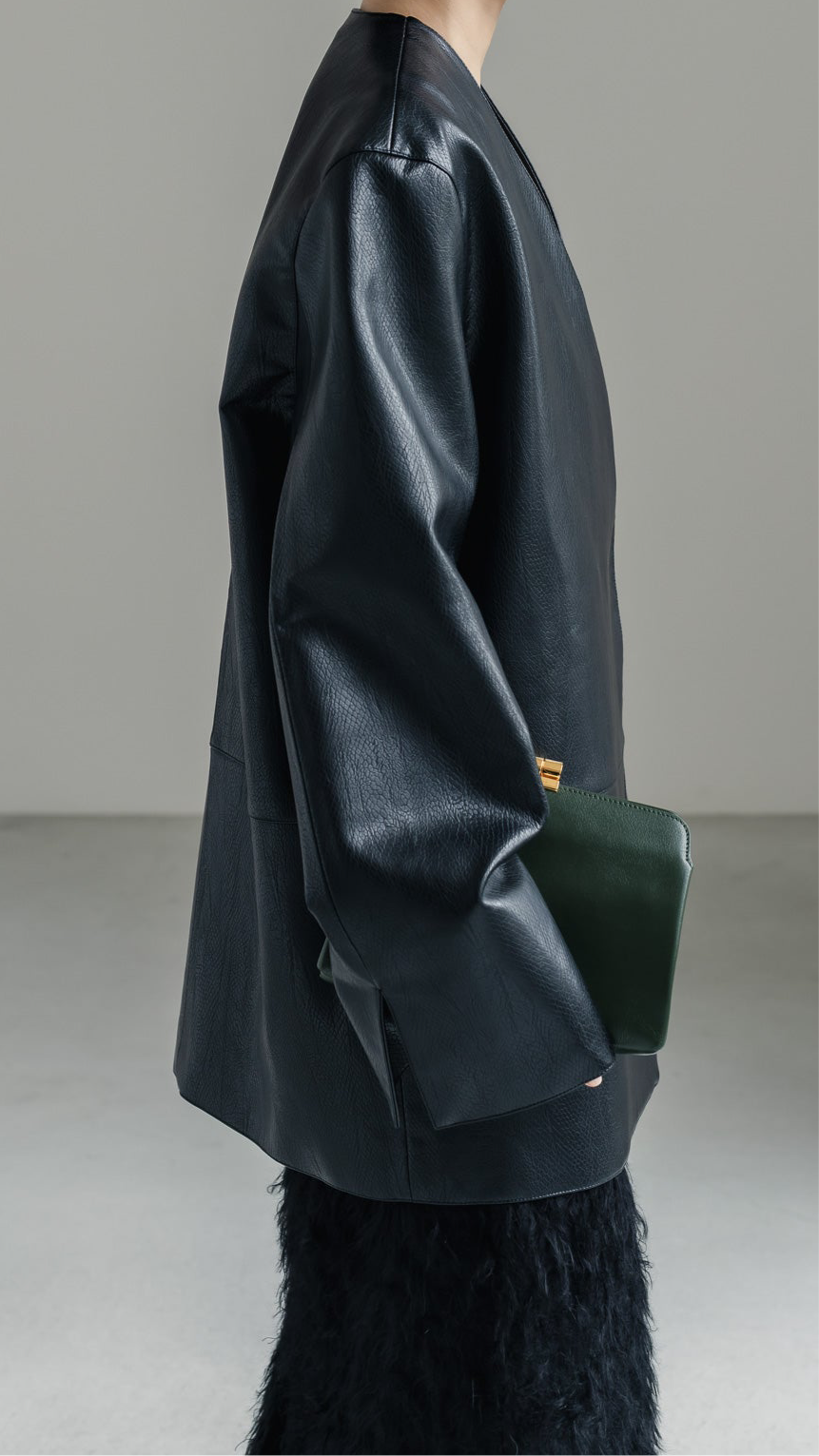 Collorless Leather Jacket
