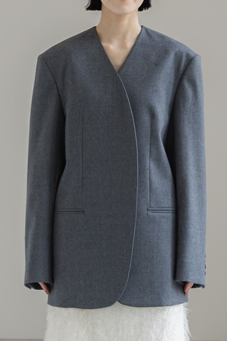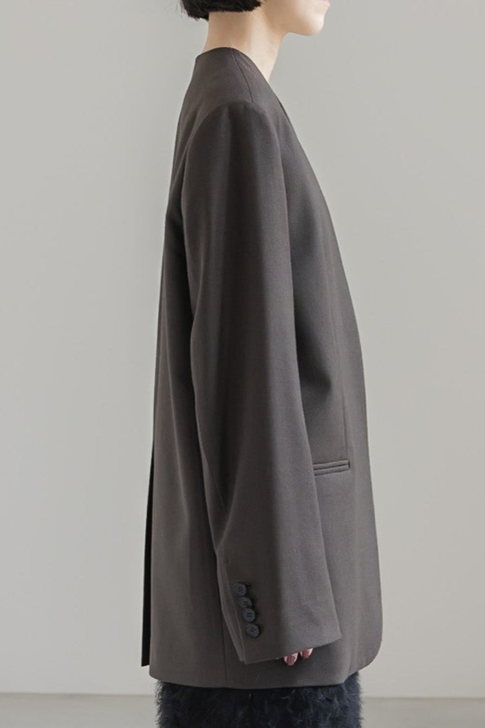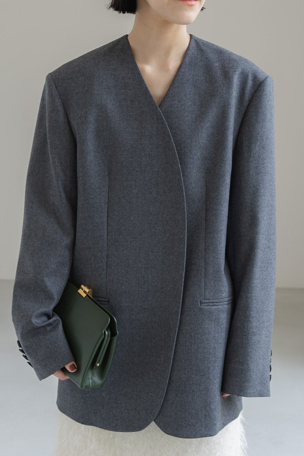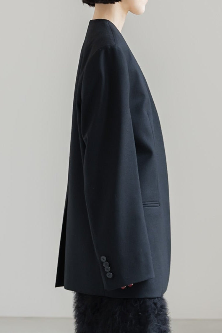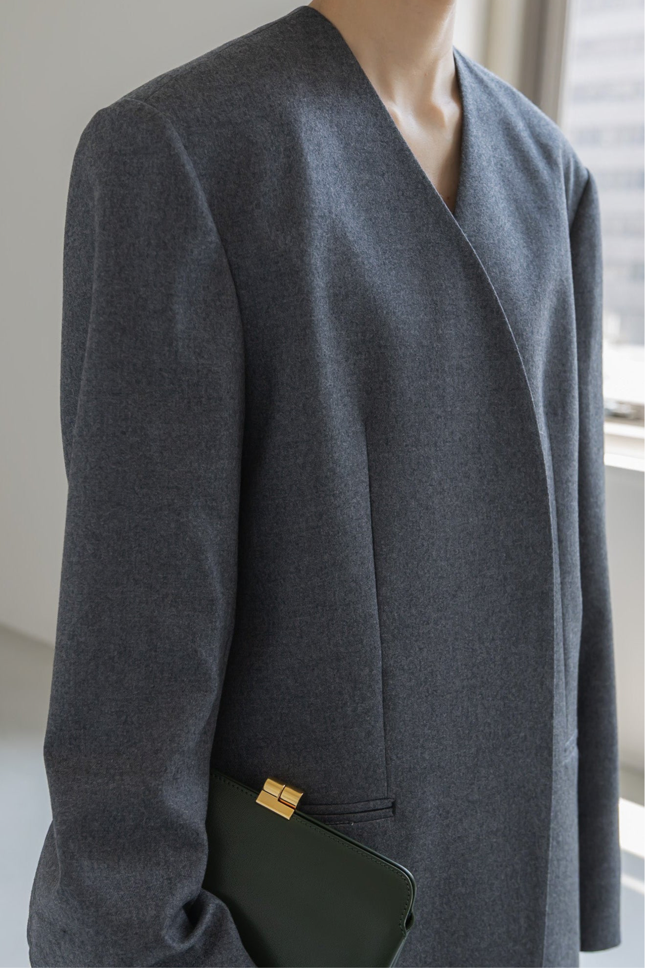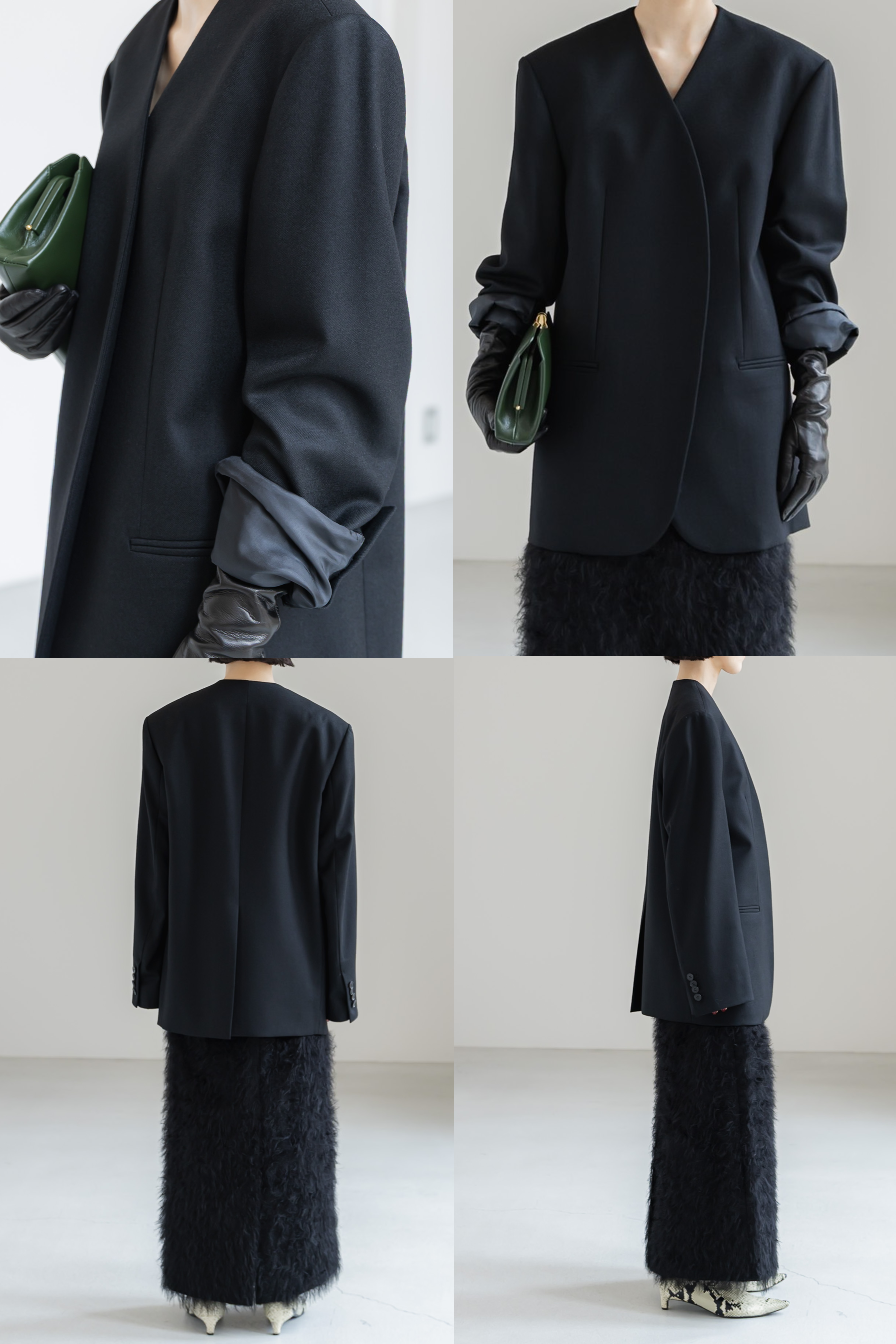 낭비를 깎아 내린 깨끗하고 세련된 노 컬러 재킷.