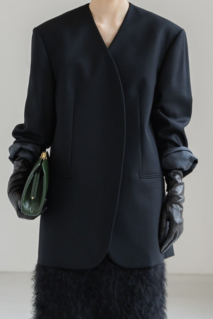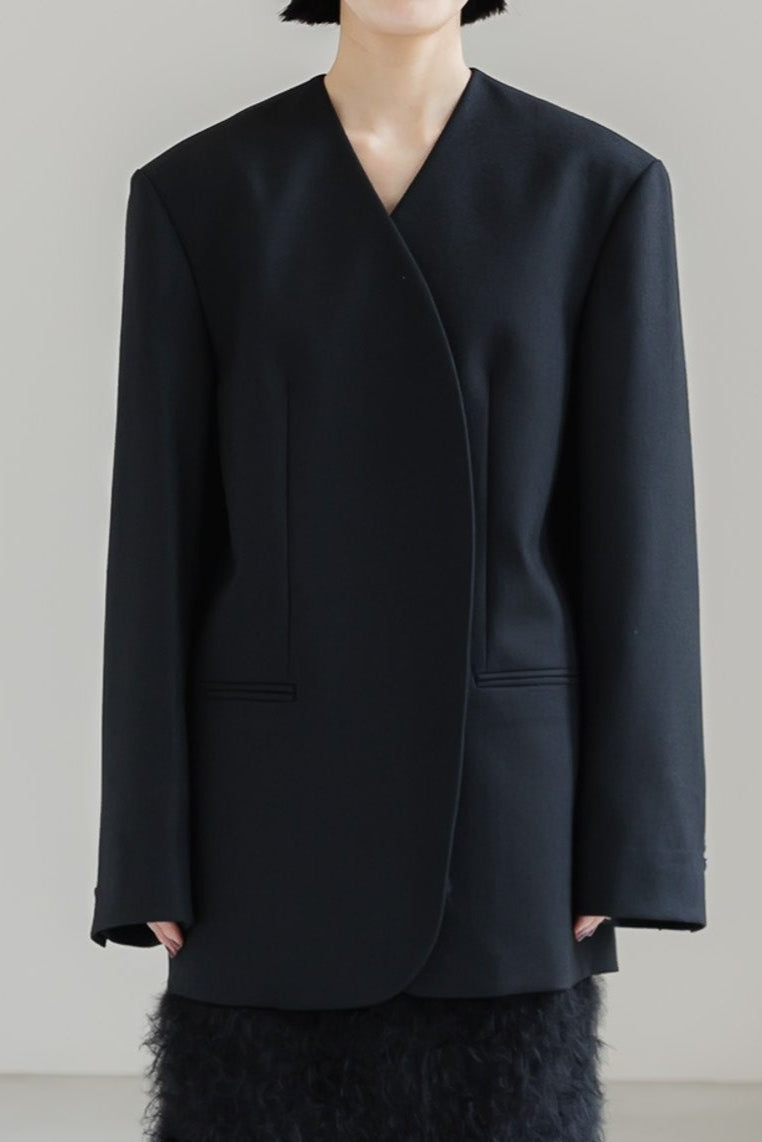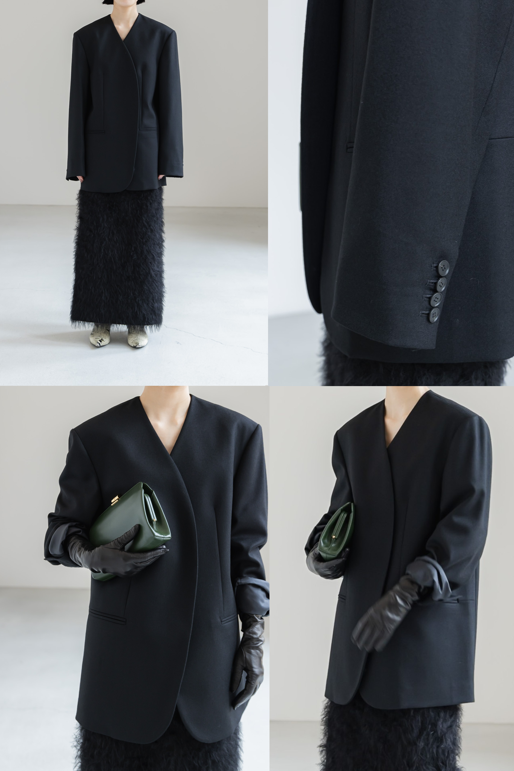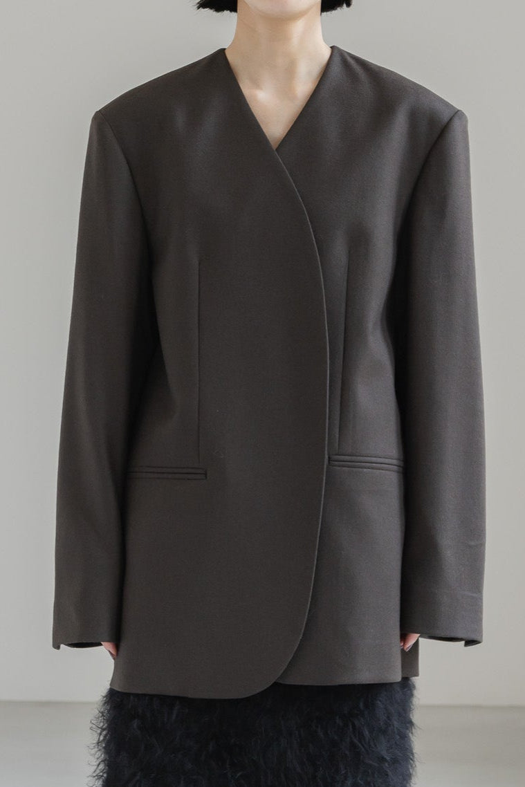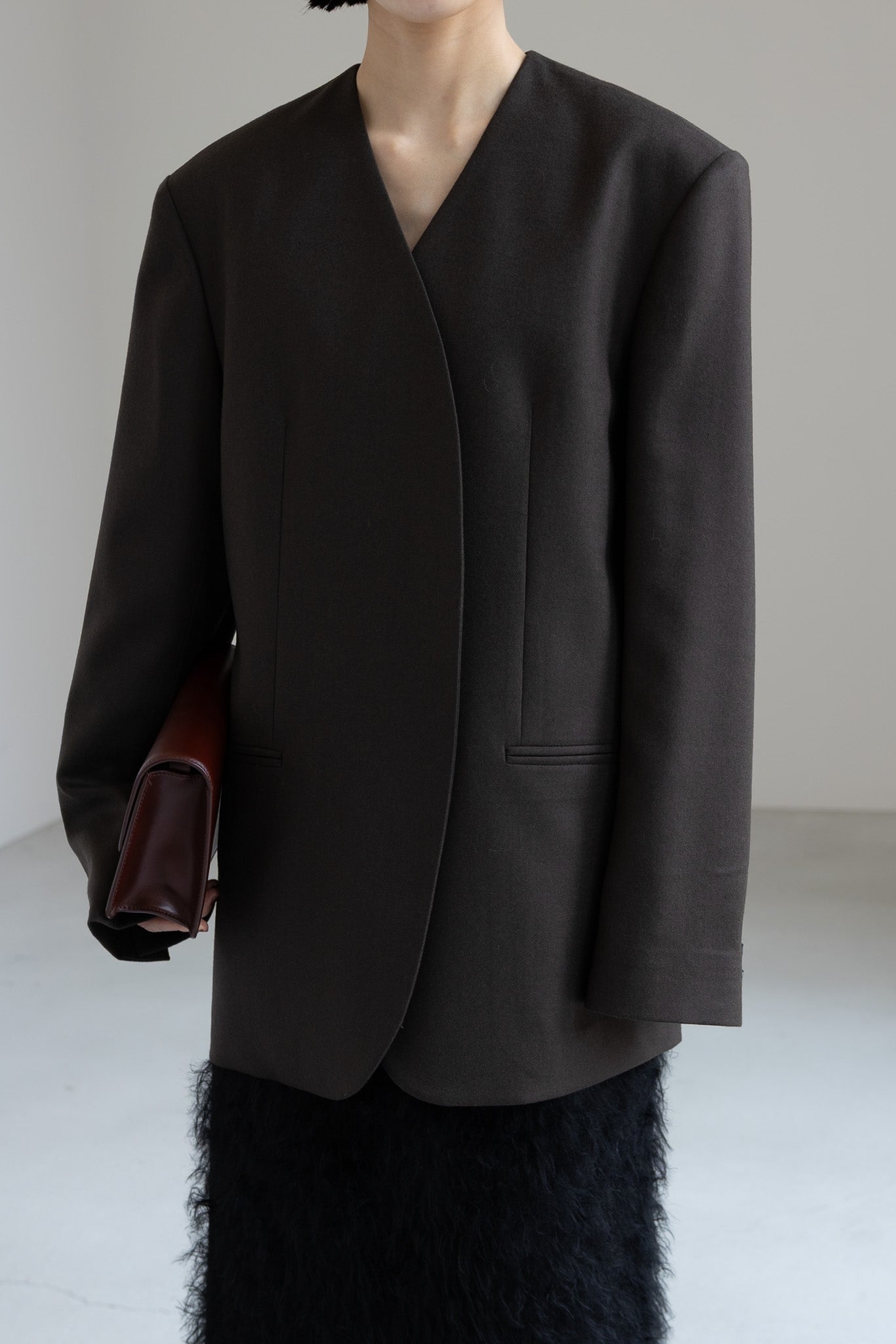 낭비를 깎아 내린 깨끗하고 세련된 노 컬러 재킷.