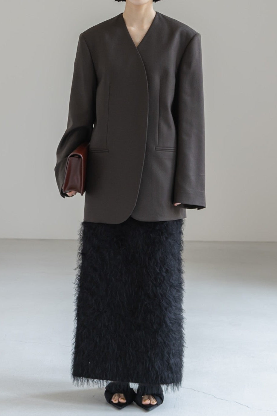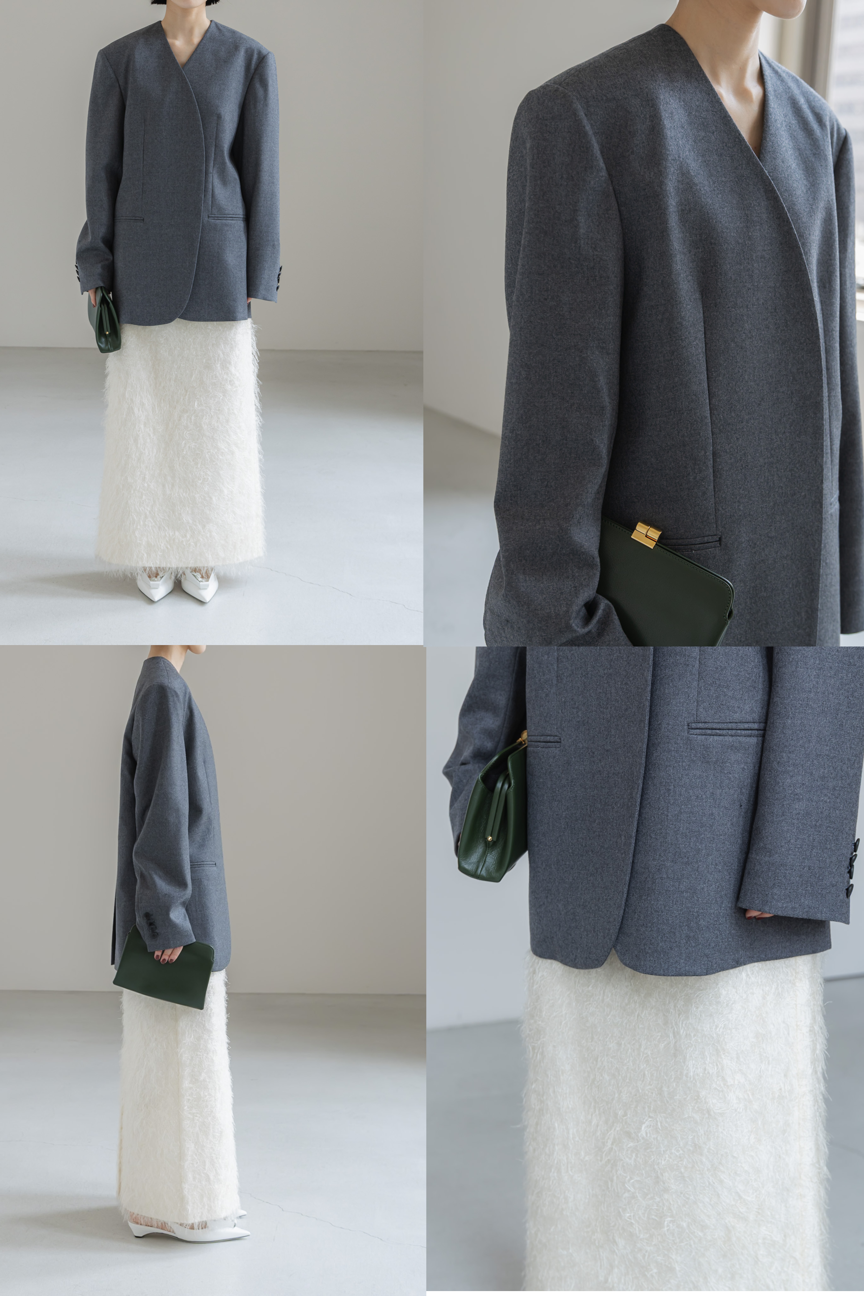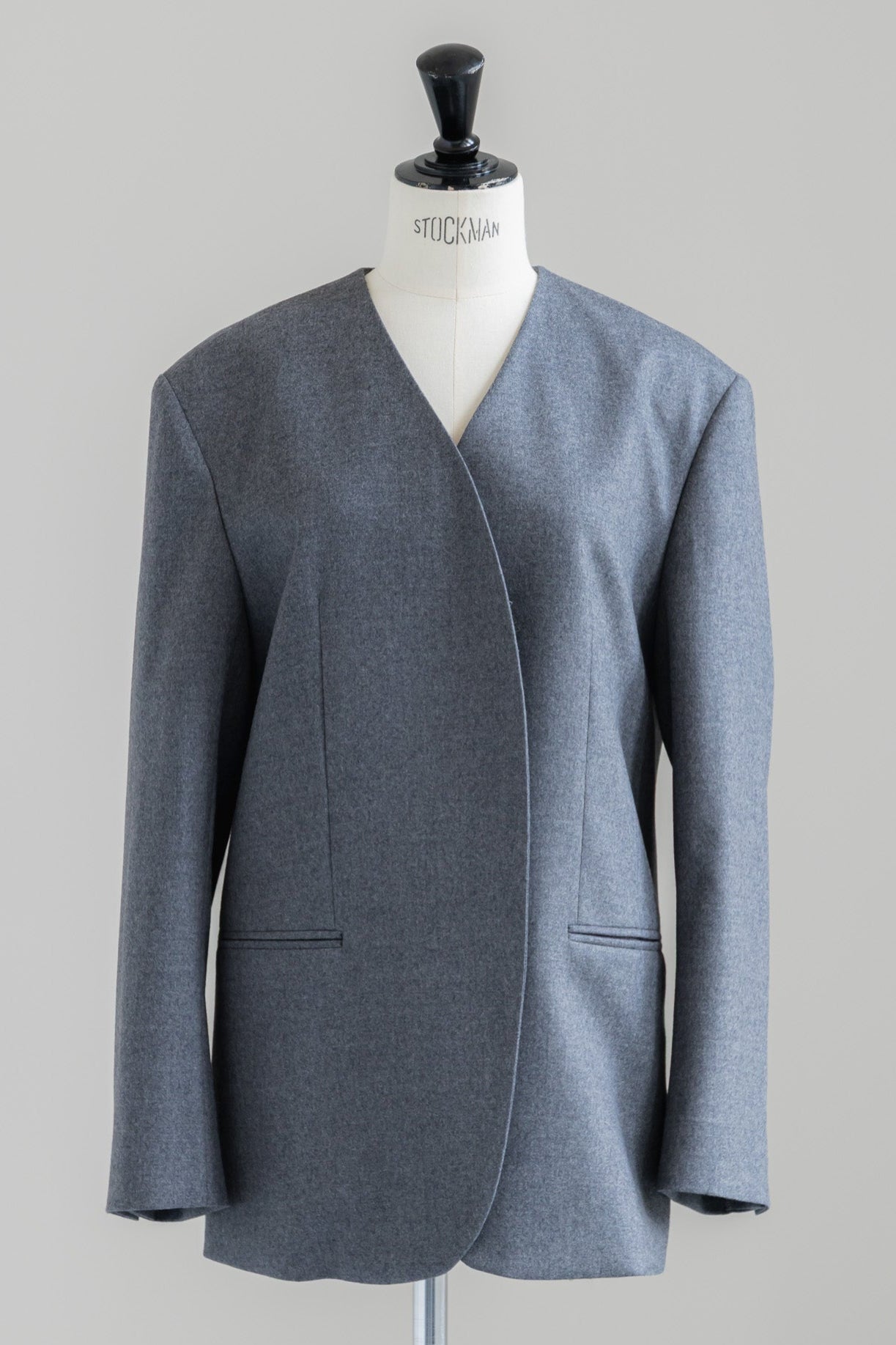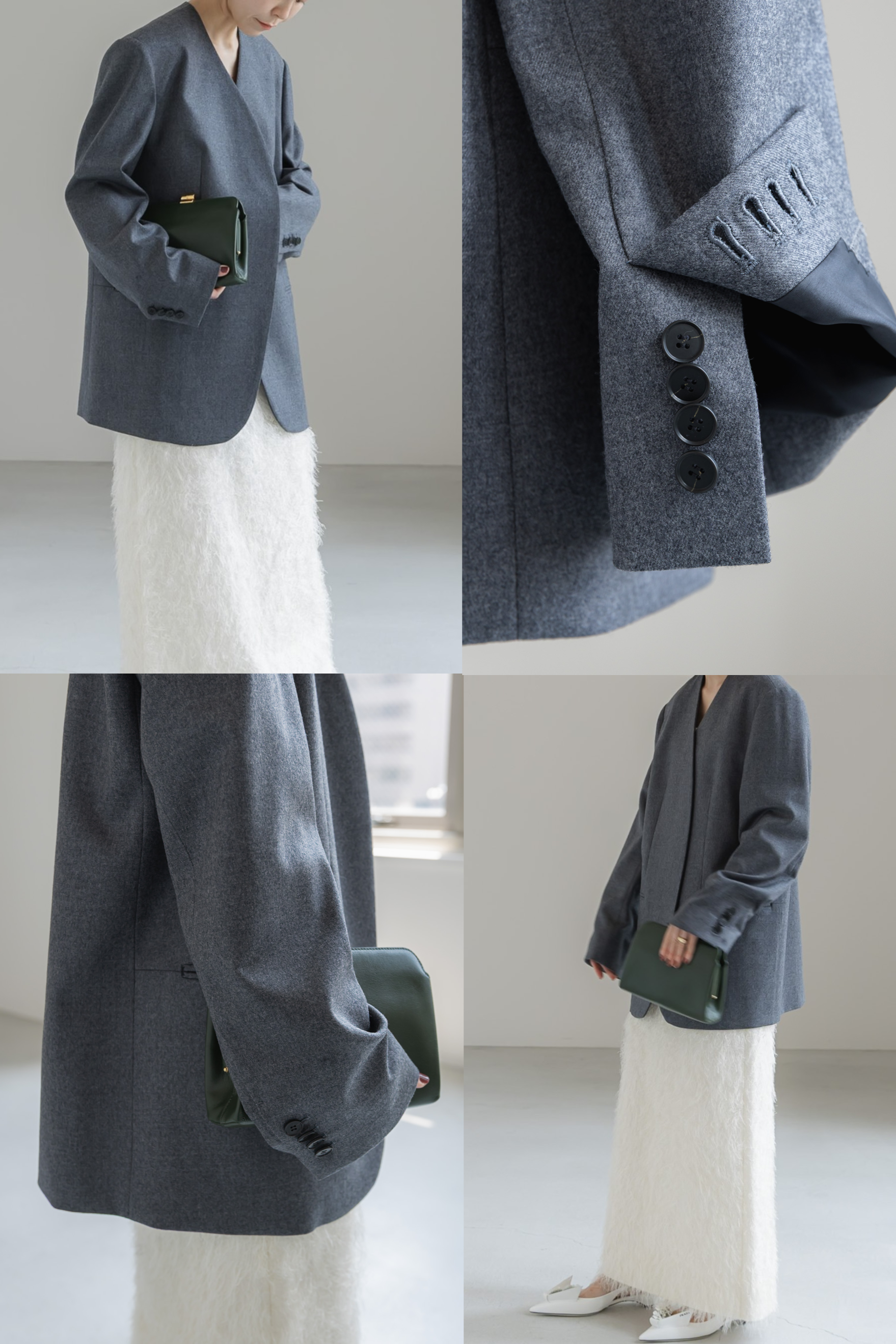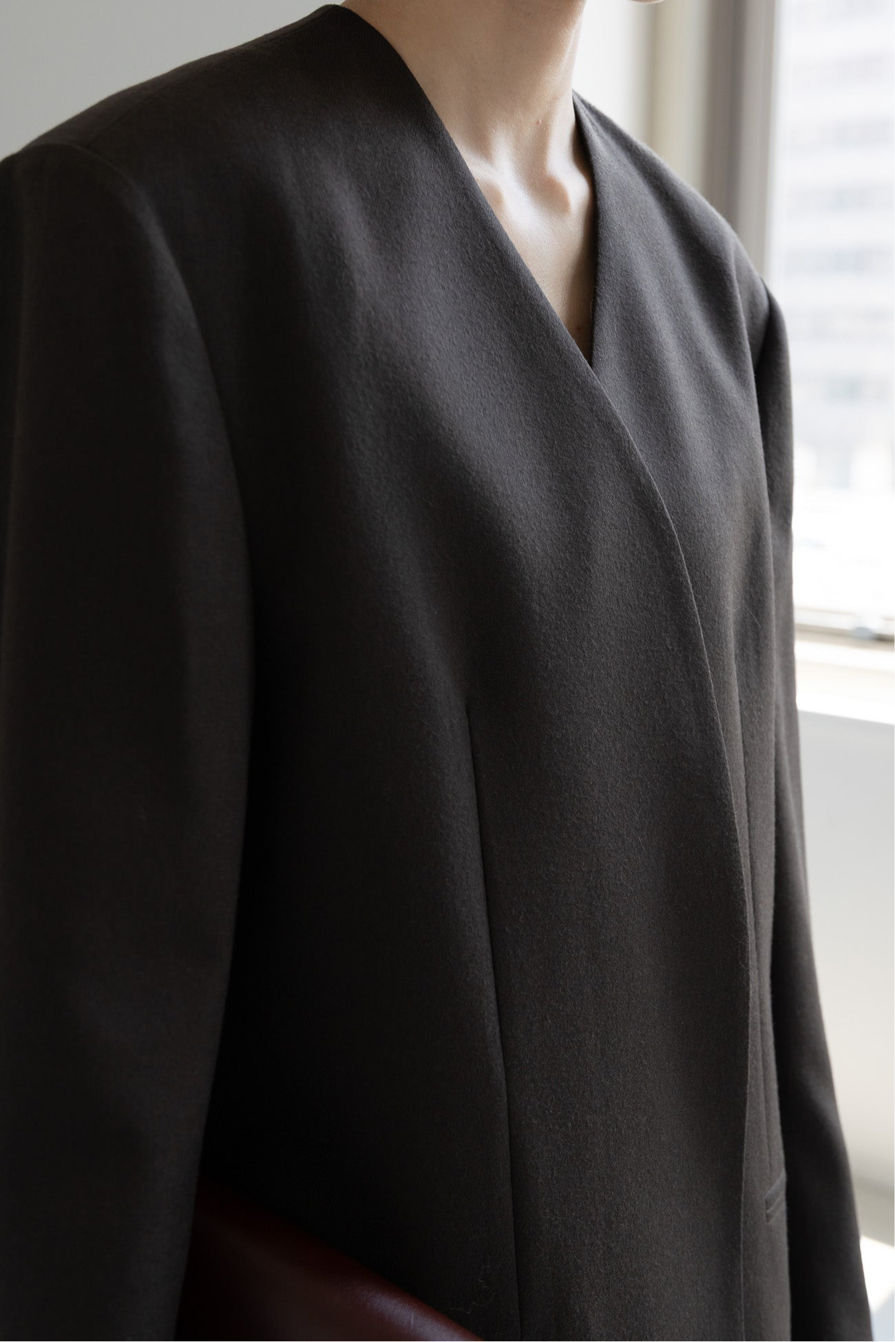 낭비를 깎아 내린 깨끗하고 세련된 노 컬러 재킷.