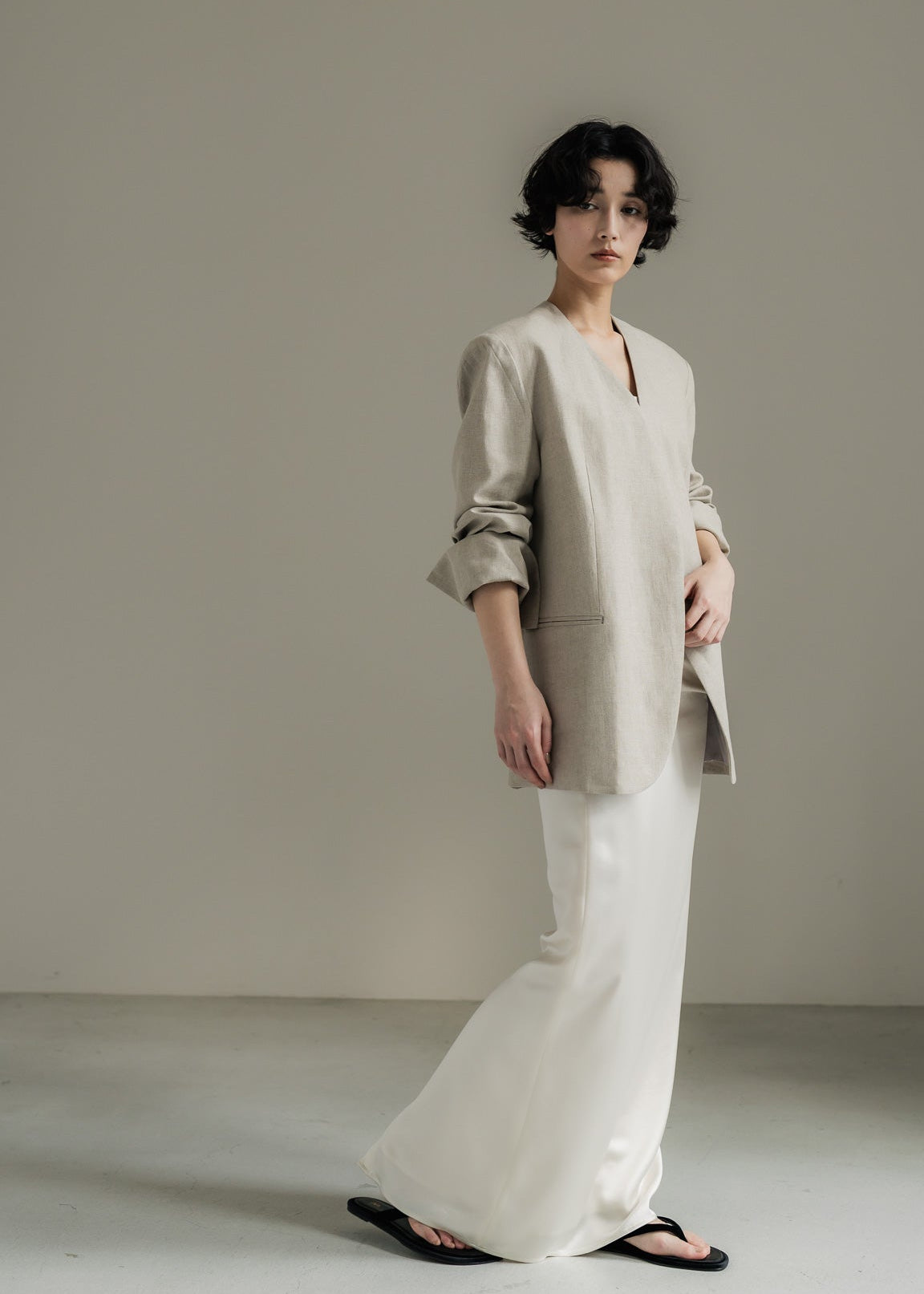 後ろに入れたベンツ開き(スリット)は、動きやすさを確保しながらも控えめな開き具合で、上品な印象をキープ。