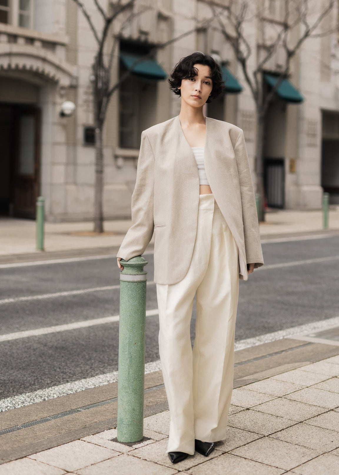 立体的で美しいシルエットとミニマルなディテールが際立つ上品で洗練された一着です。